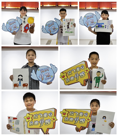 在志愿者的幫助下,孩子們還饒有興致地把寫有自己夢想的星星卡片粘貼到“我的夢想”小黑板上,并一起將親手折疊的紙飛機放飛,寓意“放飛夢想”。